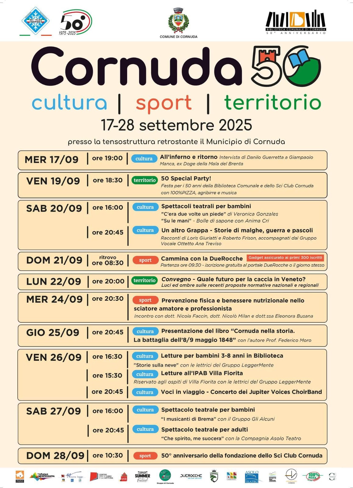sono lieto di invitarTi alla festa per il 50° anniversario di fondazione dello Sci club Cornuda asd che si terra il 28 settembre alle 12.30 presso la tensostruttura allestita sul retro del Municipio di Cornuda, all’interno della settimana “Cornuda 50: cultura, sport e storia” organizzata in collaborazione con il Comune di Cornuda